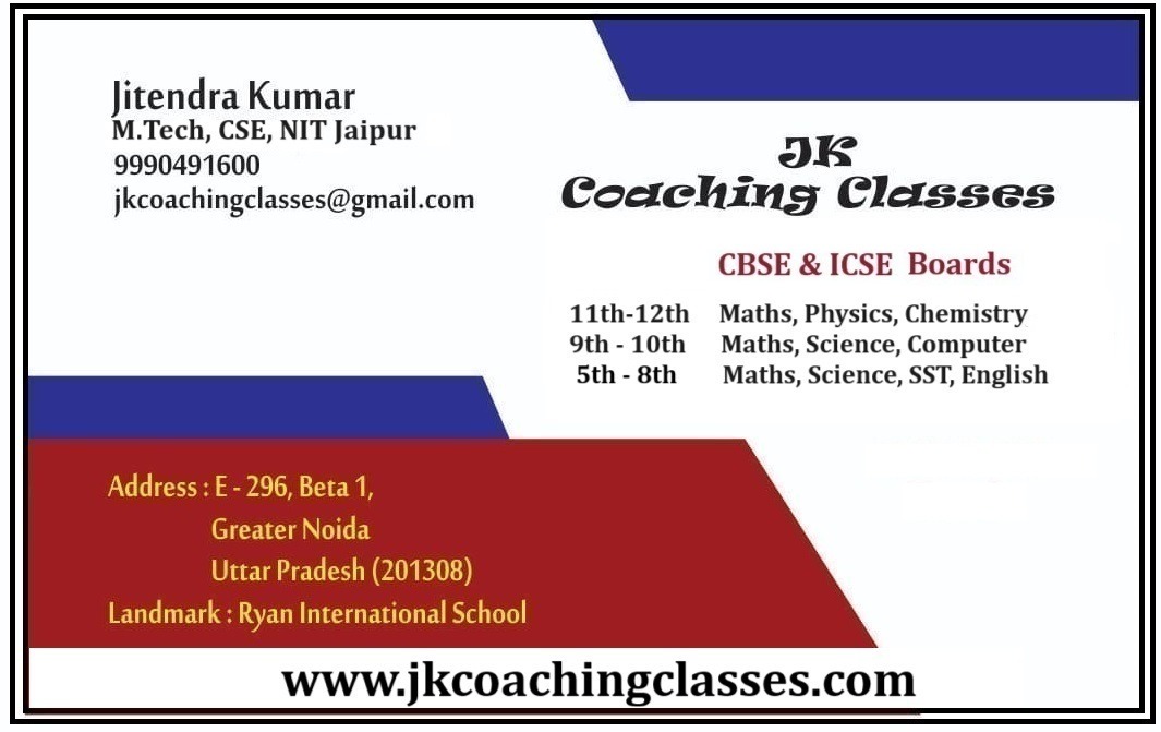 Established in 2013, JK Coaching is the fastest growing institution in Greater Noida. Led by Mr. Jitendra Kumar, M.Tech (CSE) from MNIT Jaipur, we provide academic coaching for students from class 5th to class 12th.
