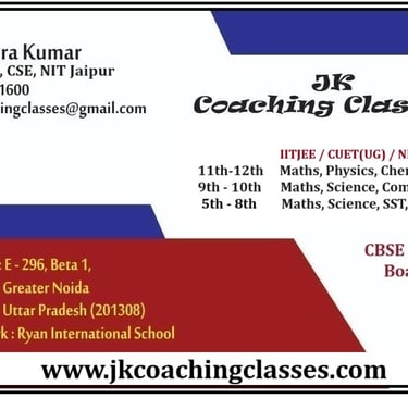 Established in 2013, JK Coaching is the fastest growing institution in Greater Noida. Led by Mr. Jitendra Kumar, M.Tech (CSE) from MNIT Jaipur, we provide academic coaching for students from class 5th to class 12th.